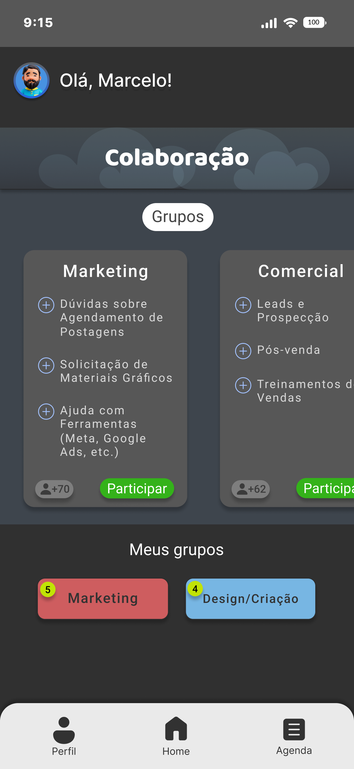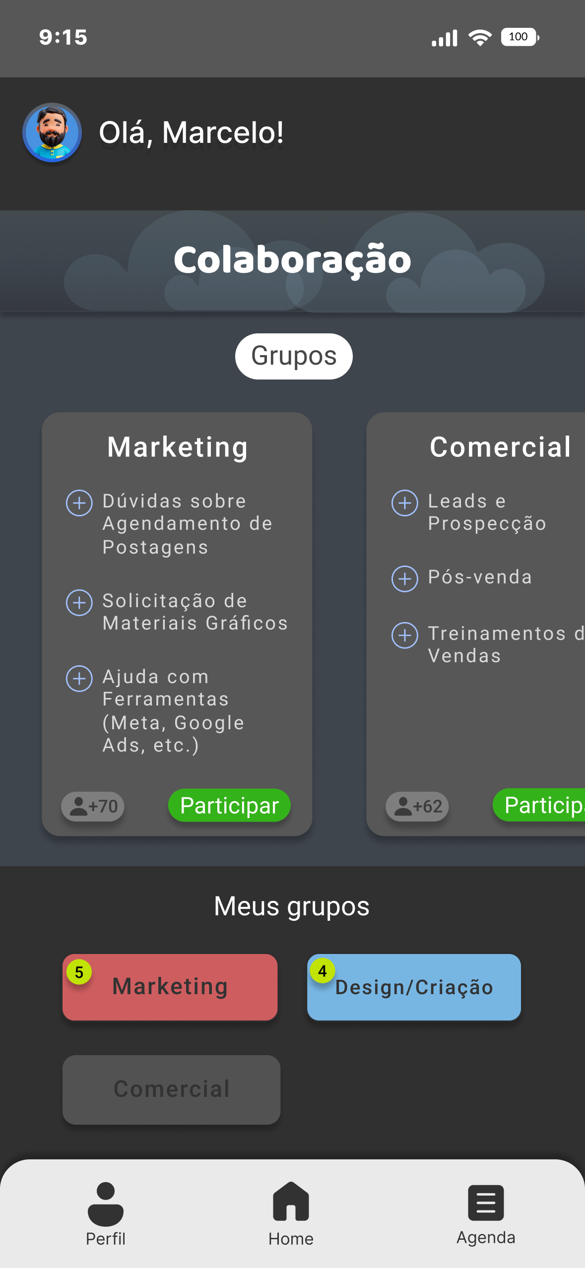 Compartilhe suas ideias e opiniões em grupos
